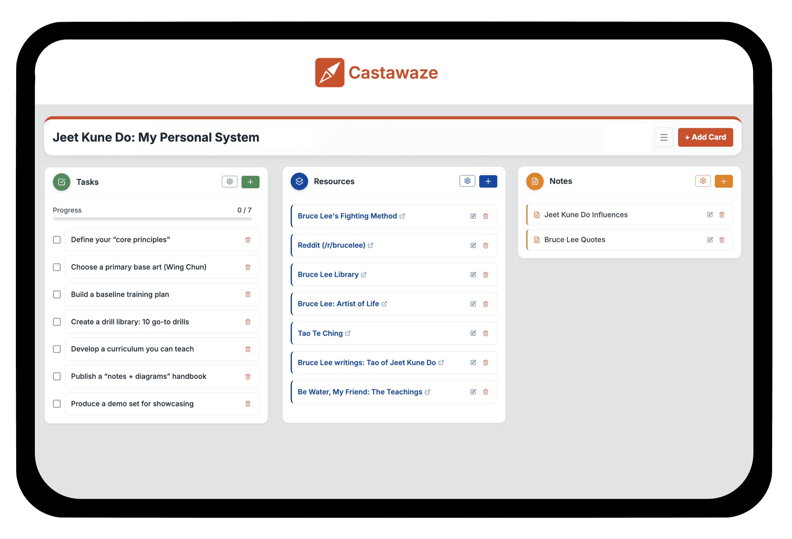 Tasks. Resources. Notes.